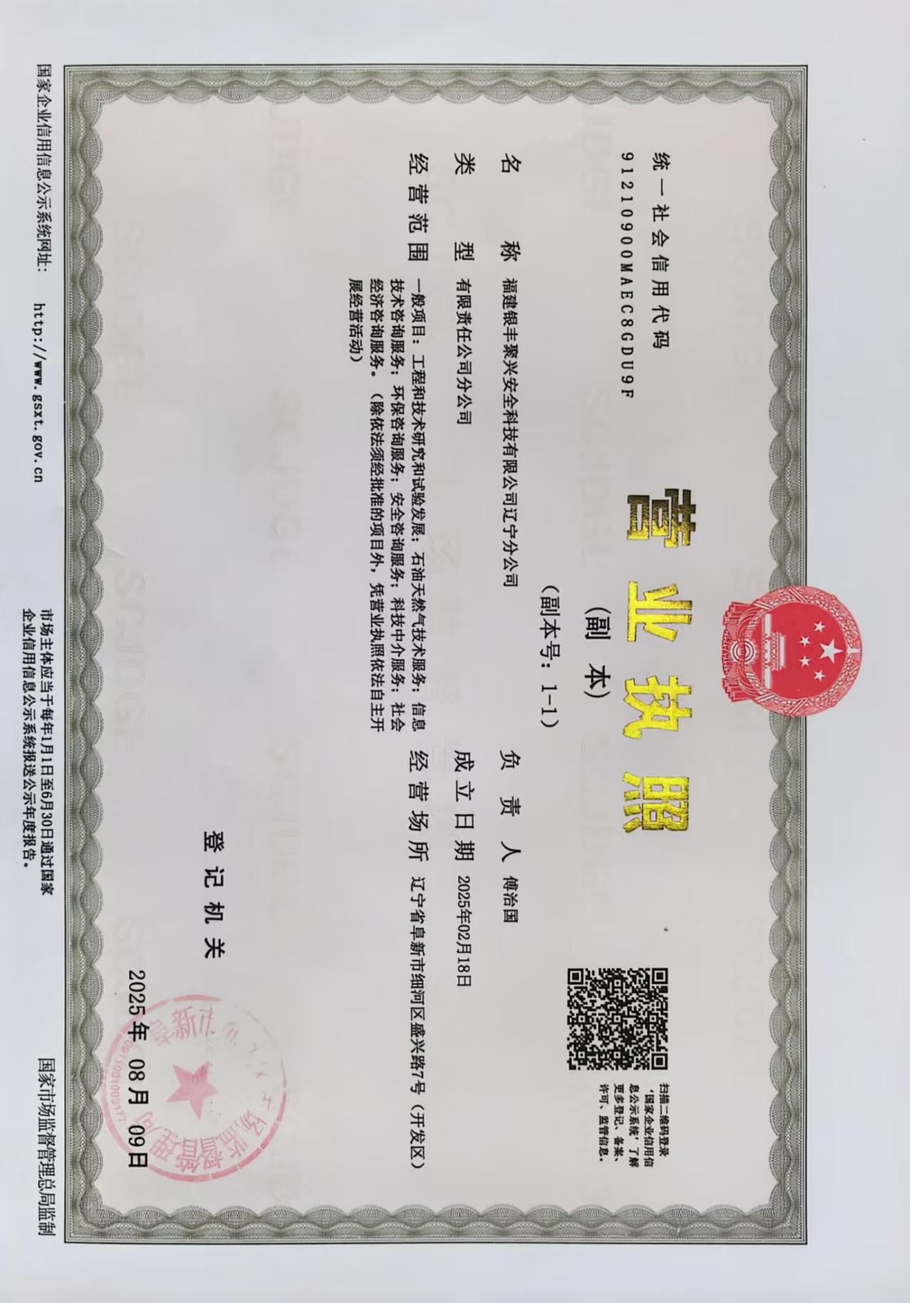 • 遼寧分公司營業(yè)執(zhí)照